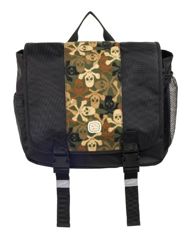 This messenger bag, designed for 5 10 year olds has backpack straps that can stow away when not in use and comes with a removable insulated lunch bag